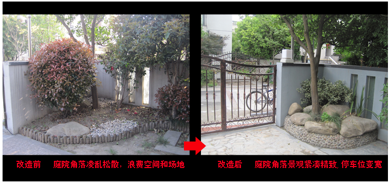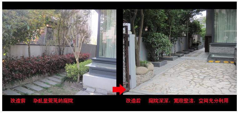 經(jīng)我們與業(yè)主反復(fù)推敲和最終設(shè)計(jì)定稿,經(jīng)改造后的別墅庭院,庭院深深,寬敞整潔,